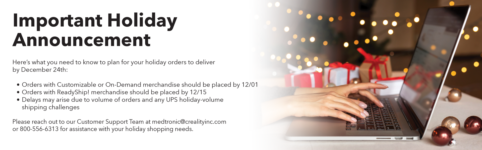 DISCLAIMER: MEDTRONIC PREFERS THAT BUSINESS-RELATED PURCHASES PLACED DIRECTLY THROUGH THIS CATALOG SHOULD BE DONE THROUGH ARIBA PO, UNLESS YOU DO NOT HAVE ACCESS TO ARIBA/CREALITY CATALOG. PLACING AN ORDER DIRECTLY THROUGH ARIBA/CREALITY CATALOG WILL CREATE A PO FOR YOU.